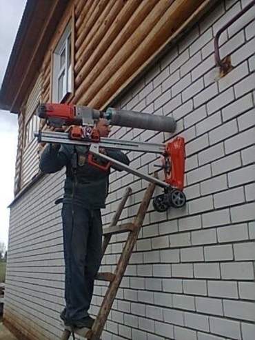 Стоимость работы зависит от глубины сверления, высоты сверления, материала стены(перекрытия) и диаметра сверления.